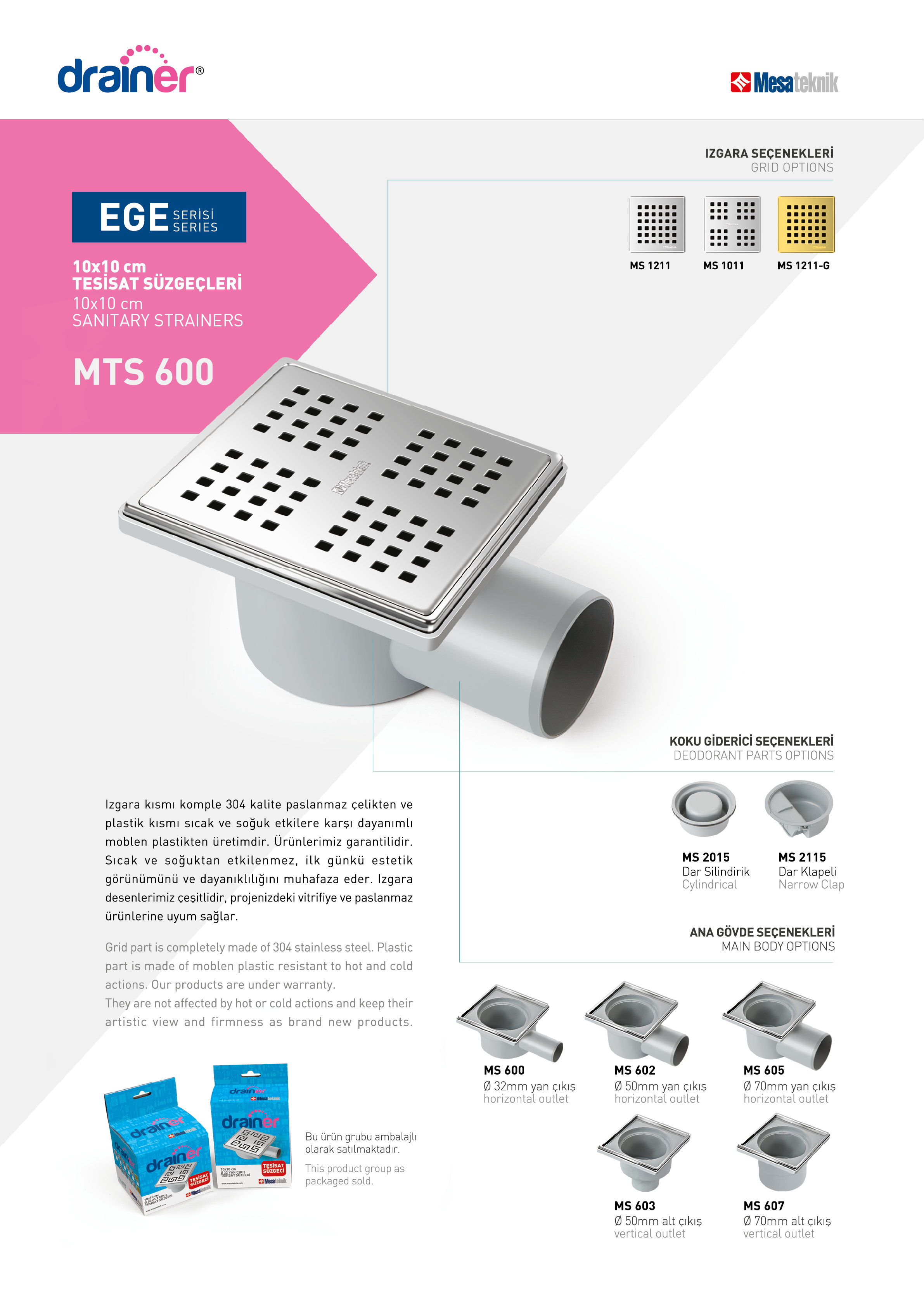 Ege Serisi 10*10 cm Ø 50mm Çıkışlı TesisatSüzgeci
